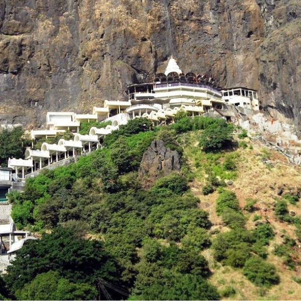 The Saptashrungi Devi Temple, located in Maharashtra, India, is a revered Hindu shrine dedicated to Goddess Saptashrungi Nivasini. Nestled in the Sahyadri hills at an elevation of about 4,500 feet, the temple features a striking idol of the goddess with 18 arms. It's a prominent pilgrimage site, attracting devotees for its spiritual significance and scenic beauty. The temple is part of the Shakti Peethas network.